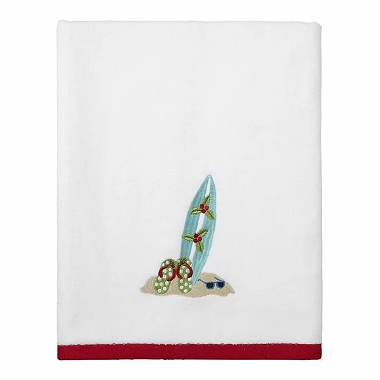 This fun and festive Avanti Flamingo Jingle bath towel combines a charming holiday motif with sunny beachside vibes.