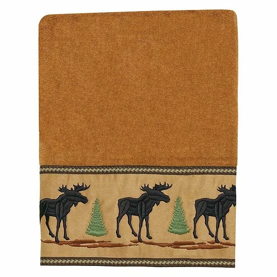 - Embroidered Moose & Pine trees on a microsuede band, Sheared velour towel