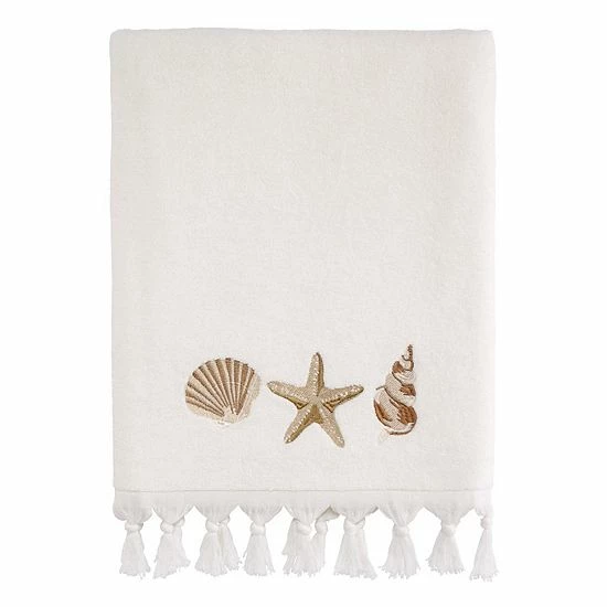 Add a cute beachside vibe to your bath decor with this Avanti Macrame Shells Bath Towel.