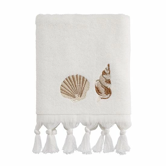 Add a cute beachside vibe to your bath decor with this Avanti Macrame Shells Hand Towel.