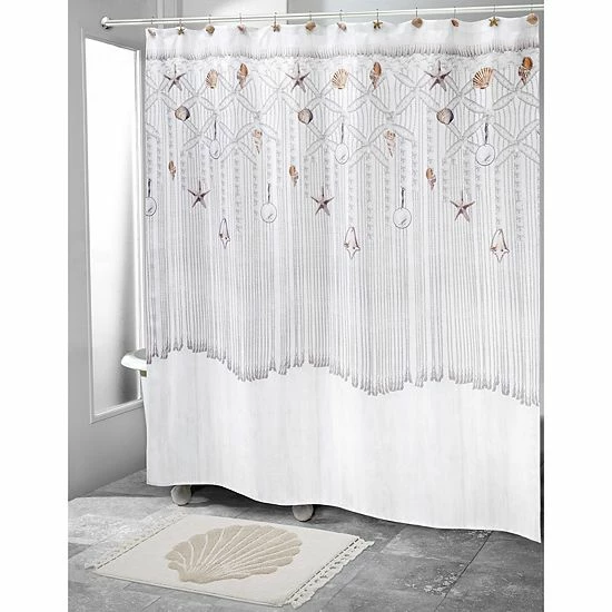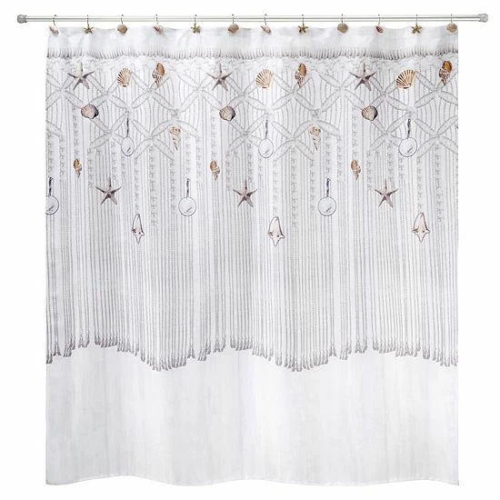 Add a beachy look to your bathroom with this Avanti Macrame Shells Shower Curtain.
