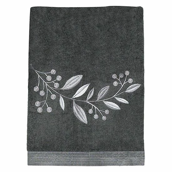 - Embroidered botanical leaves, Textured fabric band, Sheared velour towel