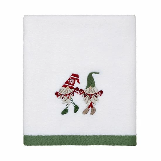 Add a fun and festive touch to your bathroom decor with this Avanti Merry Gnome hand towel.