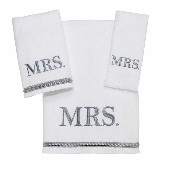 Celebrate your new title with this Avanti ”Mrs.” towel. In white.