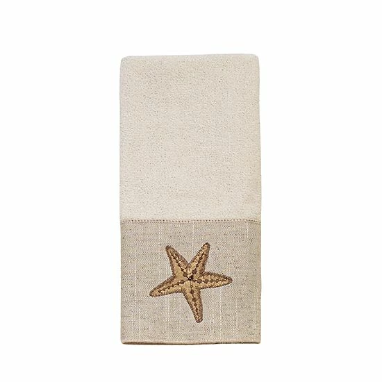 Bring a beachy look to your bath with this Avanti Sea Treasure fingertip towel. In ivory.