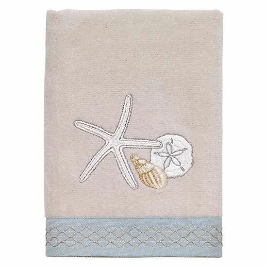 - Embroidered shells, Lattice embroidered hem, Sheared velour towel